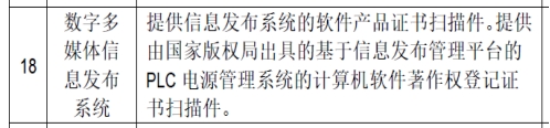 6、招标文件P134,(四)性能指标响应表中,信息发布系统要求提供如下资料: