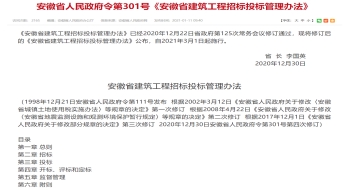 附:安徽省人民政府令第301号《安徽省建筑工程招标投标管理办法》