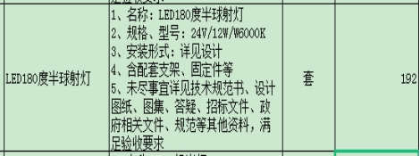 答:以招标清单 LED180 度半球射灯 24V/12W/W6000K 为准