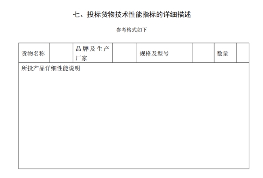 答:此项详细描述不作为初步评审。请投标人根据所投货物、自身情况自行考虑填写。