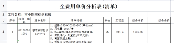 9.市中医院标识标牌清单中有综合单价已填写,是否可以自行修改?