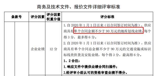 3.在企业业绩评分标准中:“自2020年1月1日以来(以合同签订时间为准),供应商具有单个合同金额不少于90万元的地库划线业绩”。请问此地库划线业绩是否可以包含环氧地坪和墙面喷涂系统,地库划线+地库环氧地坪+地库墙面喷涂系统合同金额不少于90万元是否符合评标要求?