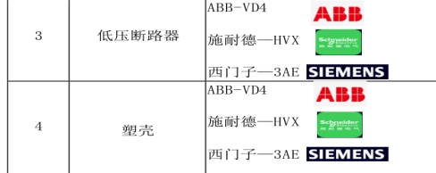 4.针对投标“参考品牌:2.低压断路器:ABB -VD4 施耐德-HVX 西门子3AE,3.塑壳断路器:ABB-VD4 施耐德-HVX 西门子 3AE”。