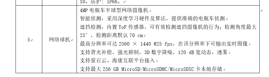 5. 网络球机-----技术规范书参数中参数要求为电瓶车半球摄像机,设备名称与参数要求明显不符合,另外该参数要求与6. 电梯摄像机相符合,请确认该参数描述是否正确?参数是否需要调整?