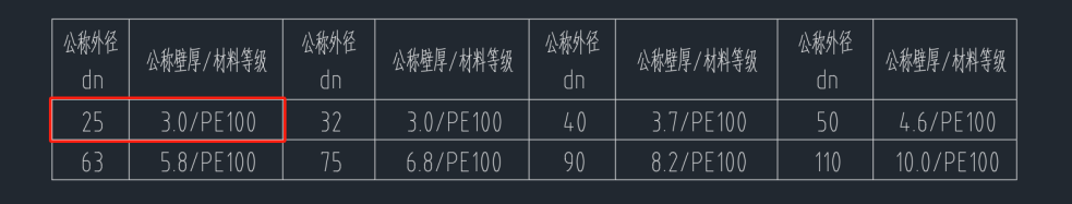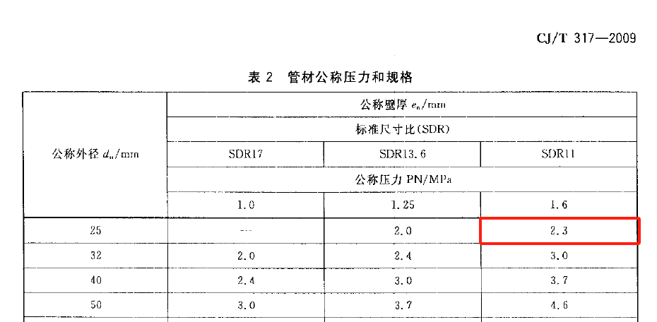 25.招标图纸《总图-M-目录、说明等 (咨询专家意见完善)》中,De25的垂直换热管壁厚3.0mm;图纸《地埋管节点做法》中De25的垂直换热管壁厚2.5mm,而根据目前地源热泵规范《GB 50366-2009 地源热泵系统工程技术规范》及《CJT 317-2009 地源热泵系统用聚乙烯管材及管件》,公称压力1.6MPa的De25换热管,壁厚在2.3mm。请问该换热管壁厚以何为准?