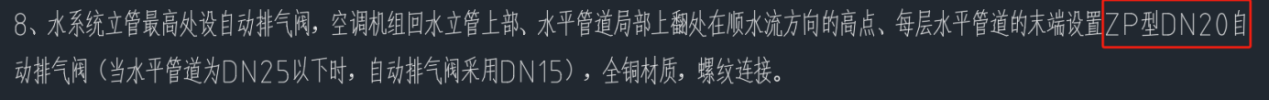 (2)空调水系统中,自动排气阀未标注规格,请问是否参照图纸说明统一设置ZP型DN20自动排气阀?