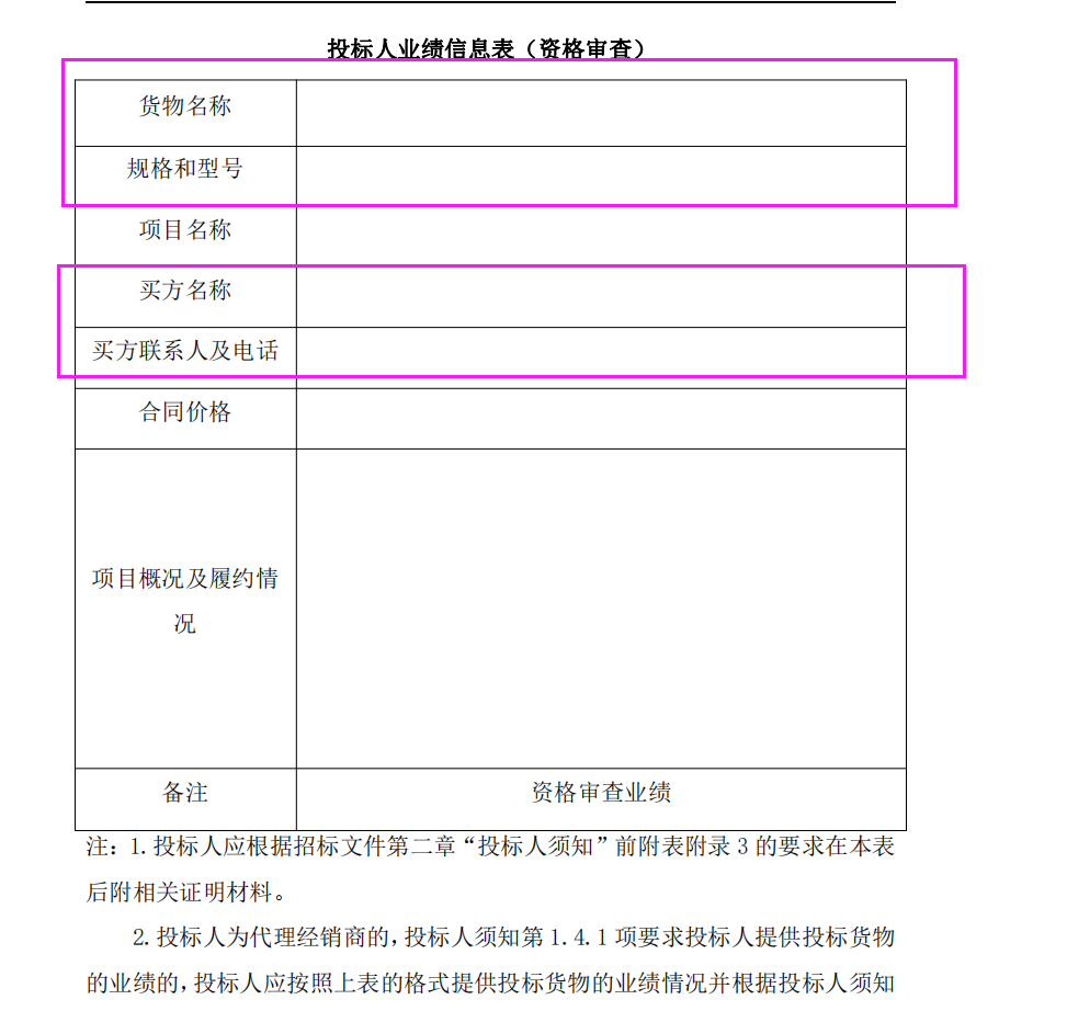答复:业绩信息表由投标人自行编辑,据实填写相关内容,但须确保内容真实有效。