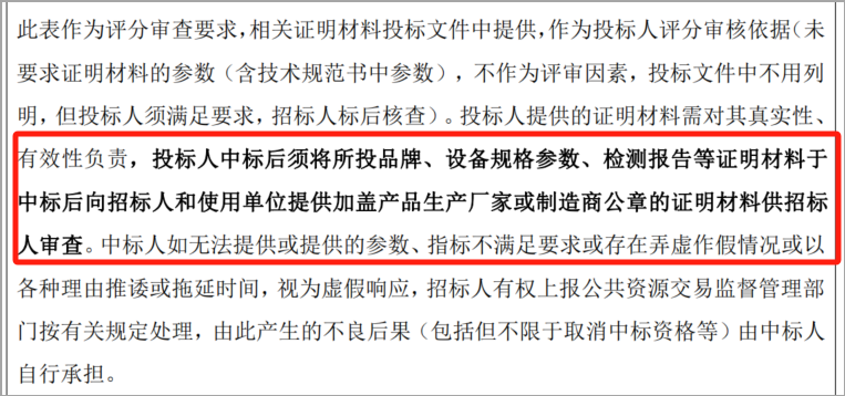 答复:本项目主要设备进场前,品牌及选型须经使用单位进行深化适配,设备规格参数等以深化适配完成并经招标单位认可后,相关证明材料于招标人通知后5日内提供。