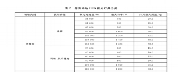事实依据:根据中华人民共和国住房和城乡建设部提出的国标标准《GBT 38539-2020 LED体育照明应用技术要求》中对体育场灯具的瓦数要求,应调整为LED灯具功率≤1600W。