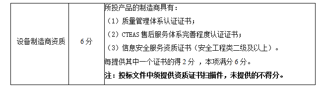 1.第三章评标办法-商务、技术及报价文件详细评审标准-商务文件评分标准-设备制造商资质,其中第二条 CTEAS 售后服务体系完善程度认证证书。经咨询不同制造商,不同厂商都有完善的售后服务体系认证证书,发证机构都是权威单位,CTEAS只是其中之一,不应限定只此一家。建议改成提供权威机构颁发售后服务认证证书,且可在国家认证认可监督管理委员官网(www.cnca.gov.cn)查询,体现公平性。