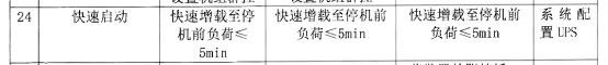 答:所投机组标配快速启动功能,并且配置UPS电源柜,按招标文件执行。