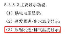 答:按招标文件执行。该温度显示要求为压缩机进/排气温度显示,非饱和冷凝温度和饱和蒸发温度。