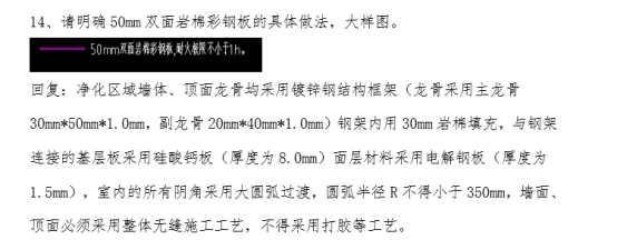 51.请明确层流天花的材质、过滤等级及控制要求等,图纸及清单未见相关描述,请明确。