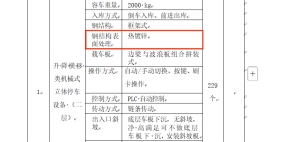 疑问:行业通常做法是前后立柱、前后横梁、左右纵粱钢结构规格是一致的,这样钢结构稳定性非常好。但是,招标文件钢结构框架前后横梁规格不一致,这会导致受力稳定性和均衡性较差,且每个供应商设计生产的机型钢结构部分尺寸很难做的完全一致。因此,1建议钢结构部分允许厂家自报,钢结构部分满足客户使用和特检部门验收要求即可,2或者修改如下表,允许更多优质厂家参与竞争。3车板边梁厚度≥δ3.0钢板热镀锌就可以满足项目需求,招标文件要求≥δ3.5钢板热镀锌没有必要,还导致了设备成本的增加。