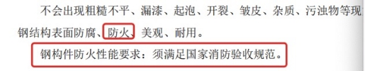 : 钢结构需满足国家相关防火需求,相关费用含在投标报价中。