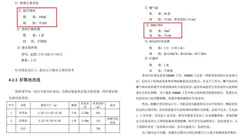 ②《安医大高新区污水站改造方案》P26、P27中,水解池新增填料100m3、好氧池新增10m3,共新增200m3悬浮填料;