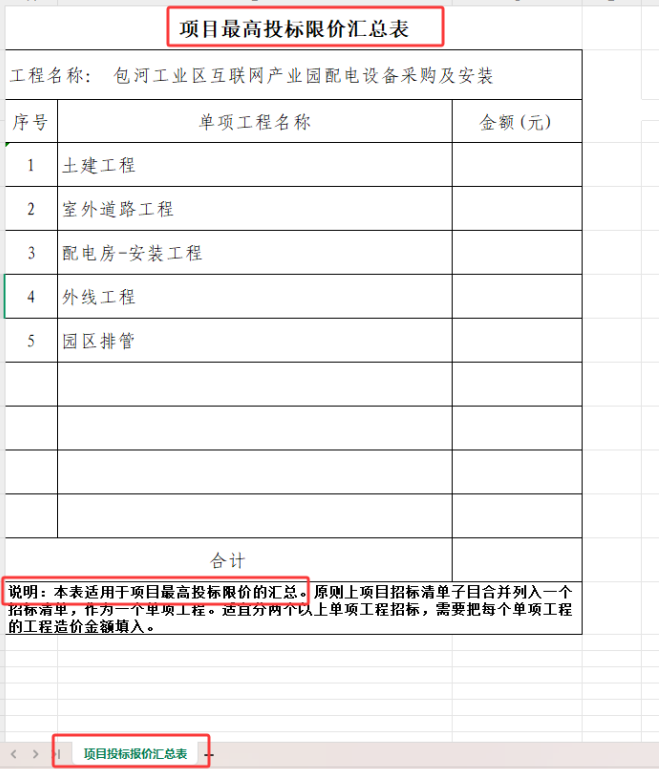 4、投标报价汇总表文件打开后名称为最高限价汇总表,请明确是否需要修改