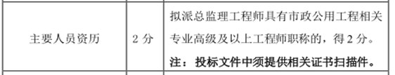 拟派总监理工程师具有园林相关专业或市政公用工程相关专业高级及以上工程师职称的,得2分。 注:投标文件中须提供相关证书扫描件。 |