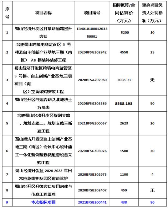 我司认为该违约处罚金额过高,因为我们统计了(详见下附表2)贵公司(合肥蜀山高科园区发展有限公司)最近招标的项目,合同金额均远超过本次招标项目,但对更换总监理工程师的违约处罚标准均远低于本次规定金额或没有规定。我司认为该规定明显不合理,为此建议如下: