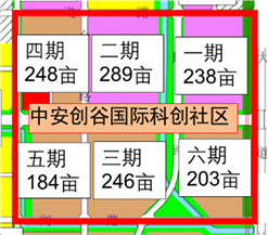 中安创谷国际科创社区根据项目需要调整开发时序,四期地块与六期地块对调,原定六期地块调整为四期地块(用地面积约203亩),原定四期地块调整为六期地块(用地面积约248亩,含商业用地48亩)(详见本补疑附图)。请各投标单位结合调整后时序合理进行概念性规划设计。