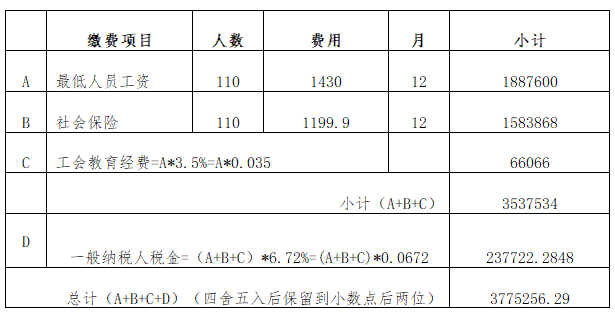 注:所有人员无论其年龄是否达到退休年龄,全职或兼职人员,投标人报价时均应包含此项费用。