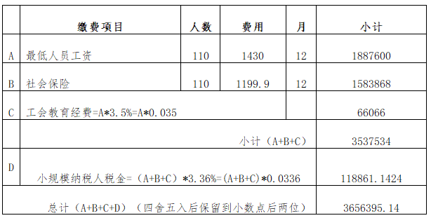 注:(1)人员工资不低于池州市最低工资标准(1430元/人/月)。