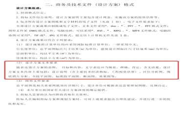 答:设计方案文本内容投标人根据项目需求及评审指标要求自行考虑。设计单位可根据表达需要调整。
