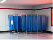 折叠式,带万向转轮,外框201不锈钢,厚度:0.8mm,中间用蓝色绸布,高 1800MM,展开宽度 1500MM(每折宽度为 500mm,三折为一个)