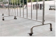 1500mm×1100mm,采用全新304不锈钢材质制作、外管38*1.2mm、内管22*1.0mm、铁马整体结实强度高; 每个铁马配4个承重脚轮万向轮,可刹车,聚氨酯(PU)材质,承重力强,顺滑抗磨静音,每100个铁马配备用轮子10个; 中间有不锈钢板子上面印制合肥地铁logo; 铁马两脚为高低脚,高脚约10cm,低脚约7cm;有挂钩; 整体工艺用亚弧焊全焊焊接并打磨抛光;表面光滑无焊接点