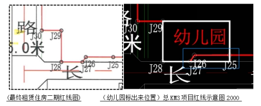 5.CAD图上,幼儿园白色框线和用地红线有出入,幼儿园边界是否按用地红线边界控制?