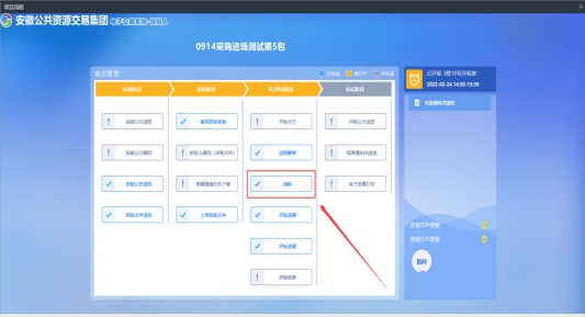 4、进入安徽公共资源交易集团电子交易系统后,选择相应的项目,点击“询标”菜单,项目负责人视频陈述后,投标单位还需对陈述事项进行签章确认。