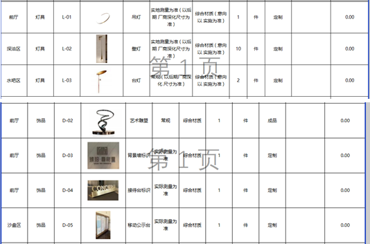 6.清单中前厅吊灯和前厅饰品的艺术雕塑没有标明尺寸,无法报价,能否提供具体尺寸?