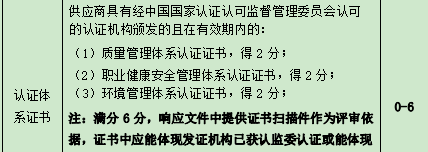 7.招标文件19页,评审标准:认证体系证书,供应商具有3大认证体系证书可得分。因软装产品服务均为定制产品,有证书厂家可保障质量,甲方此处要求的3大认证体系证书,是否为定制厂家拥有证书?提供即可得分?