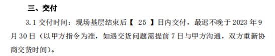 8.招标文件22页,合同中约定,交付时间:现场基层结束后【25】日内交付,请问现场基层目前做到什么程度?预计最迟什么时间结束硬装基层?