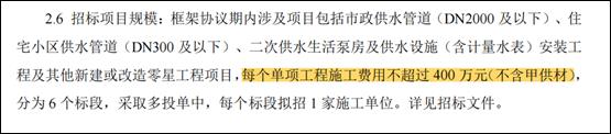 (1)具有单个合同中管径不小于DN600且安装长度不少于500米的市政供水管道施工业绩;