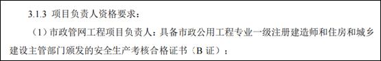 四、招标文件关于市政管网工程项目负责人资格要求为: