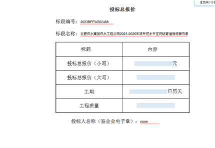 回复:投标人可按合同估算价*投标费率填写,工期填写内容由投标人自行决定,工程质量填写“合格”即可,评标时评标委员会将不对该表格内容进行评审。