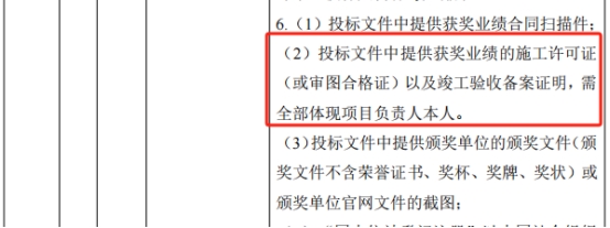 1.招标文件 第三章评标办法及定标办法“商务及技术文件详细评审标准”中拟派项目负责人获奖 第6条(2)投标文件中提供获奖业绩的施工许可证(或审图合格证)以及竣工验收备案证明,需全部体现项目负责人本人。由于我司竣工验收文件格式中各参建单位均未体现项目负责人名字,但审图合格证体现项目负责人名字,是否予以认可?