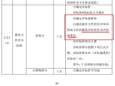 4.招标文件P60-P61报价文件评分标准中“确定评标基准价”要求不一致,请问以哪一个为准,请明确。