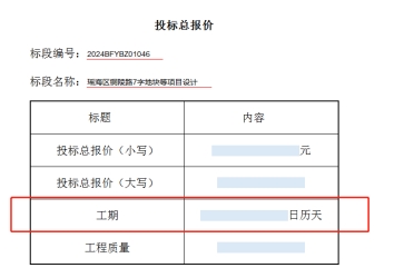24.招标文件第一章招标公告“2.8设计服务期限:设计服务期自服务合同签订之日起至竣工验收备案移交止,预计 36 个月,具体以实际为准。中标人在招标人提供设计需求后 20 个日历天内完成所有单体方案和总体规划设计,并报自规部门审批;方案经使用单位确认及规划部门审批后,30 个日历天内完成初步设计及概算编制工作,并报发改委审批;初步计经专家审查通过后,30 个日历天内完成施工图审查”。在新点投标文件制作软件的投标总报价中需要填写工期为多少日历天,请明确此处该工期应写具体写多少日历天?