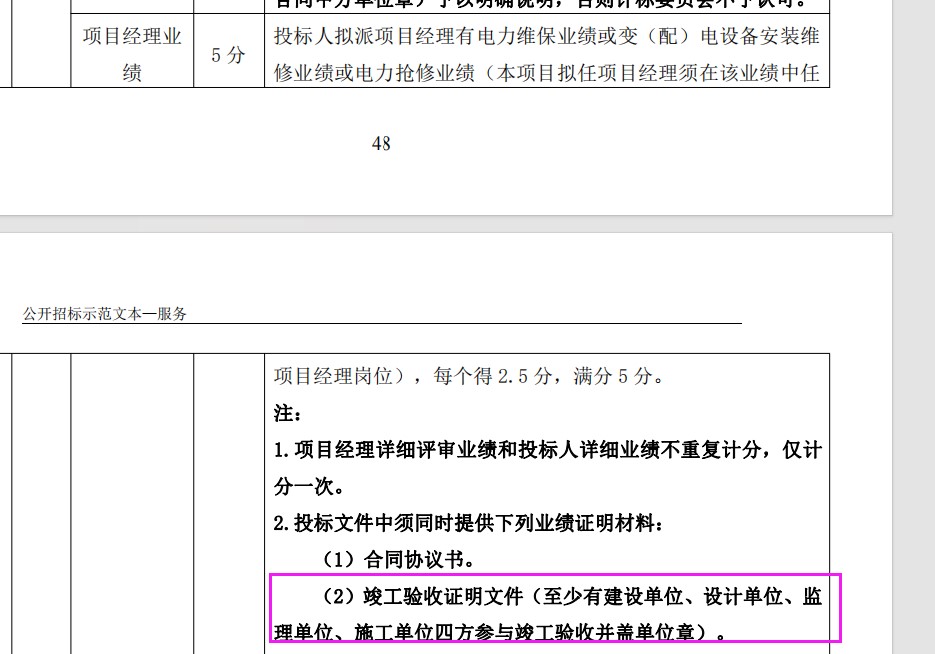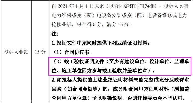 疑问1:投标人业绩要求中,变(配)电设备安装业绩是否为施工业绩?
