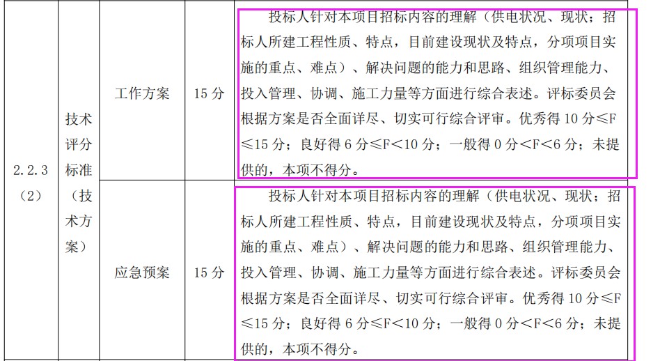 2.关于招标文件技术评分标准要求工作方案与应急预案,具体要求内容如下截图: