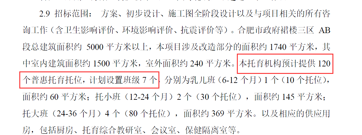 合肥市市级示范性普惠托育机构建设项目设计招标文件补疑1