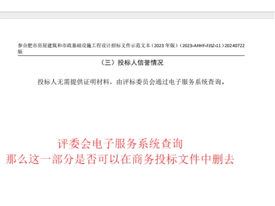 2、商务文件第四部分资格审查资料,第三点投标人信誉情况由评标委员会通过电子服务系统查询,是否就可以在商务文件中删除第三点投标人信誉情况。
