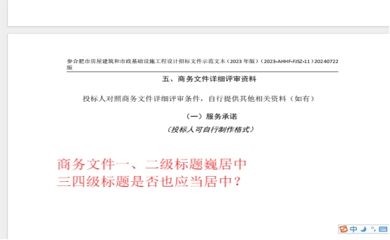1、招标文件中给予的商务文件格式中,一、二级标题为居中处理,三、四级标题是否也要跟随一、二级标题做居中处理。