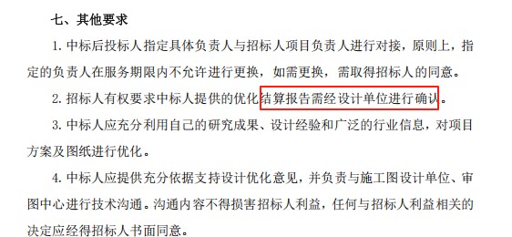 2.第三章招标人要求处,第七、其他要求第2点,优化报告可经设计单位确认,结算报告建议咨询单位核对。合同中表述相同修改。