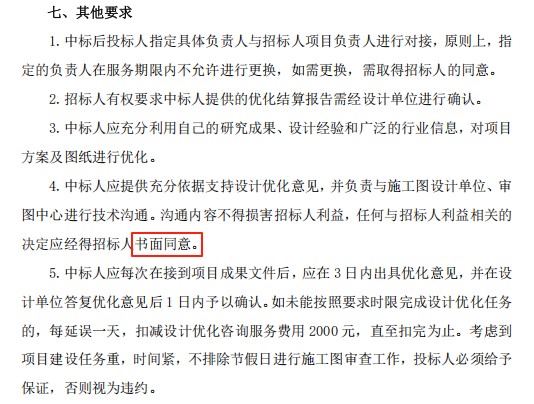 3.第三章招标人要求处,第七、其他要求第4点,建议修改为“应经招标人书面同意或签字确认”。