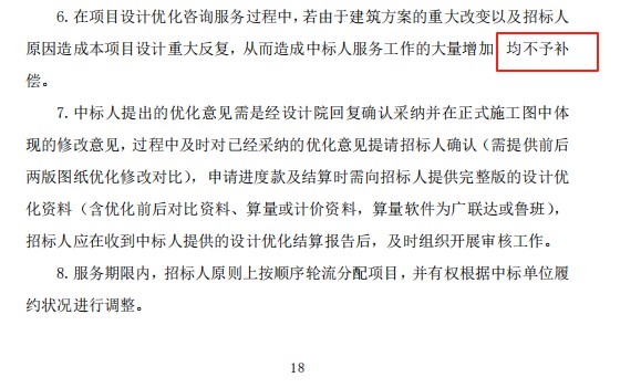 答:此次招标内容包括结果优化和过程优化,本合同为框架合同;待中标后,招标人再根据委托项目实际情况,确定采用过程优化或结果优化。设计优化工期要求1修改为:“采用过程优化的项目,乙方的设计优化应与设计单位的设计进度同步进行”;要求2修改为:“采用结果优化的项目,在设计院设计完成后,乙方可根据甲方书面要求或乙方向甲方提出优化申请并得到甲方的确认后对设计图纸进行设计优化”。