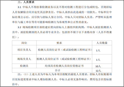 二、第五章发包人要求中第三条人员要求