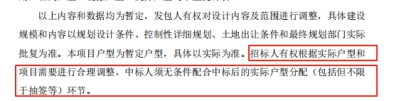 9.招标人若要进行调整,可提前7天通知中标人,建议删除“中标人须无条件配合中标后的实际户型分配(包括但不限于抽签等)环节”。